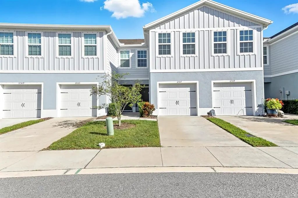 One or more photo(s) has been virtually staged. Why wait to build in a NO CDD community when you can own this like-new 2023 Ryan Homes Flamingo model with 3 bedrooms, 2.5 baths, over 1,400 sq. ft., and a 1-car garage on a beautiful pond-view homesite! This townhome is truly move-in ready and better than new! Enjoy a low-maintenance lifestyle in the sought-after Bear Creek community, offering the perfect blend of style, comfort, and convenience. The open-concept floor plan features a spacious great room that flows seamlessly into the modern kitchen, making it ideal for entertaining. The kitchen boasts a large center island, quartz countertops, modern aesthetic and design, stainless steel appliances, and ceramic tile flooring throughout the main level. The mainfloor also features a half bathroom. Upstairs, the primary suite offers a peaceful retreat with a large walk-in closet and a private ensuite bath featuring dual sinks and quartz countertops. Two additional bedrooms, a full bathroom, and convenient upstairs laundry complete the second floor. Step outside to your screened-in covered patio, perfect for relaxing or hosting a barbecue while enjoying the tranquil pond view. Additional upgrades include LED lighting, hurricane shutters, and neutral finishes throughout. The low monthly HOA of only $186 includes cable, high-speed internet, roof and paint reserves, lawn care, landscaping, and irrigation on the front and sides. No CDD fees and no flood insurance required! Bear Creek Townhomes is ideally located just minutes from the Ridge Road Extension with easy access to the Veterans Expressway, making your commute to Tampa a breeze. Close to beaches, shopping, dining, and parks! This home truly has it all. Don't wait! Schedule your showing today! This like-new townhome will not last! Subject to 3rd party (court) approval.